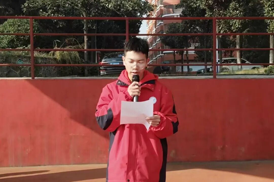 升旗仪式后,学生代表池东旭登台发言。他结合所学回溯南京大屠杀惨痛历史,阐释 “铭记历史” 的时代意义,以 “历史是鲜活警示,国耻为前行动力” 呼吁同窗以学习践行爱国担当、用青春守护和平,真挚话语引发全场共鸣。