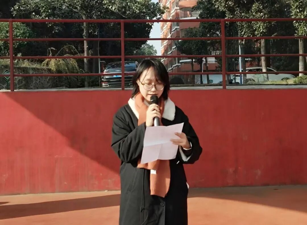 随后,教师代表杨成佩以 “铭记历史是最好的传承” 为题讲话。她援引史料重温抗战苦难与先烈事迹,强调教育者既要传知识更要传精神,引导学生铭记伤痛、汲取力量;呼吁青年将爱国情、强国志、报国行融入日常,以奋斗书写青春华章,话语兼具教诲与感召力。