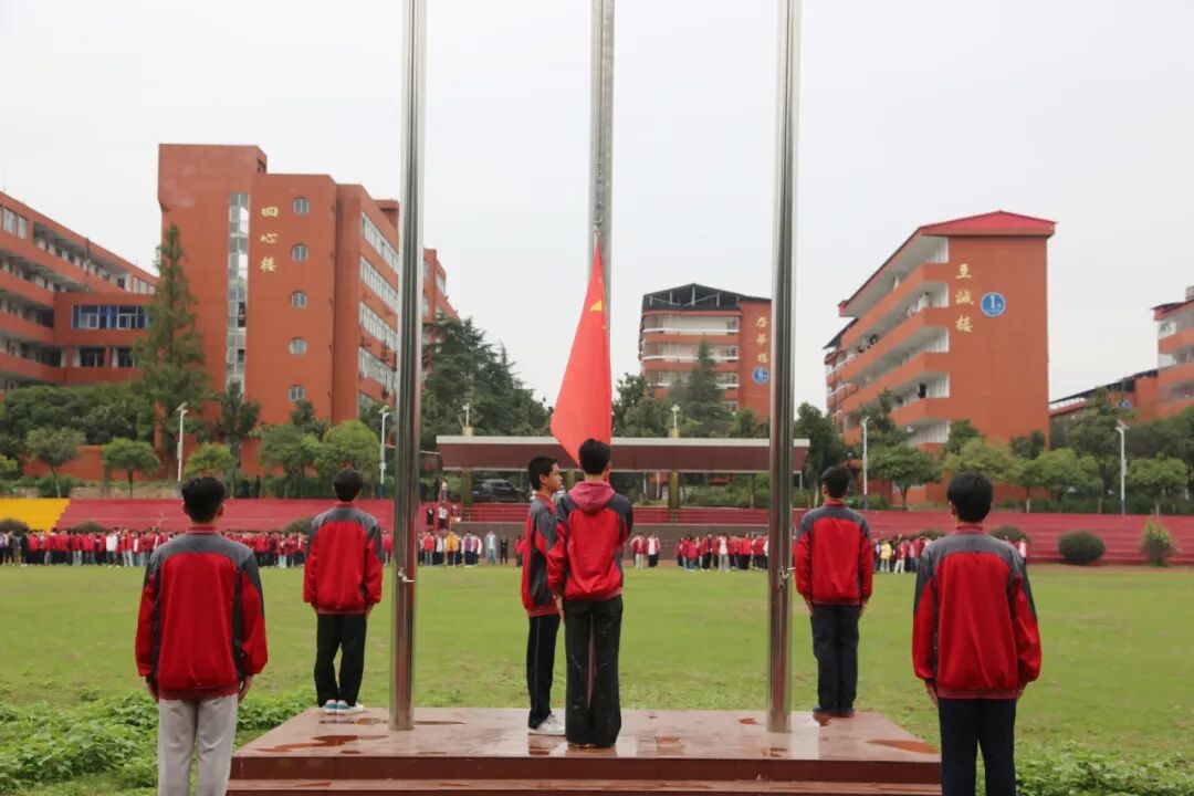 晨光遍洒校园,师生身着整齐校服聚于操场,共赴 “勤俭” 主题升旗仪式。《义勇军进行曲》响起,五星红旗缓缓升起,众人行注目礼,在敬国中开启对勤俭的思考。