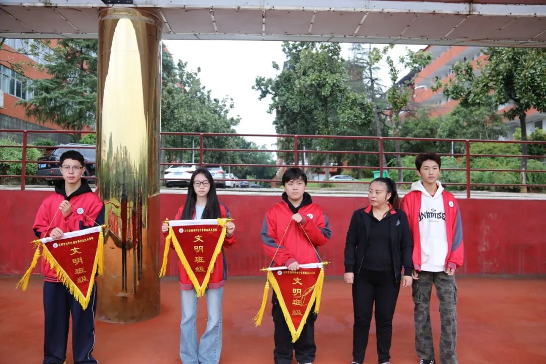 颁奖当天,校领导为获奖班级颁发流动红旗与荣誉证书。此次评选,不仅提升了班级凝聚力,更让 “文明、团结、进取” 的种子在校园里生根发芽。
