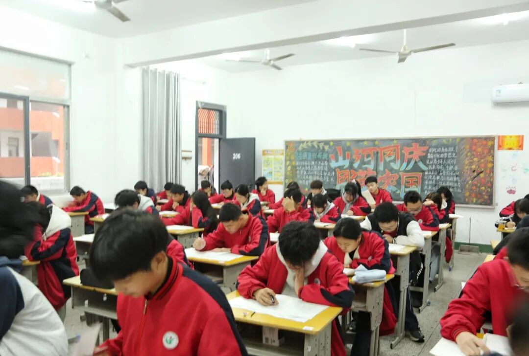 感恩分享后,仪式回顾期中考试。考前师生全力备考,考中严守纪律,考后教师分析试卷、班级召开班会,将考试转化为下半学期学习的动力。