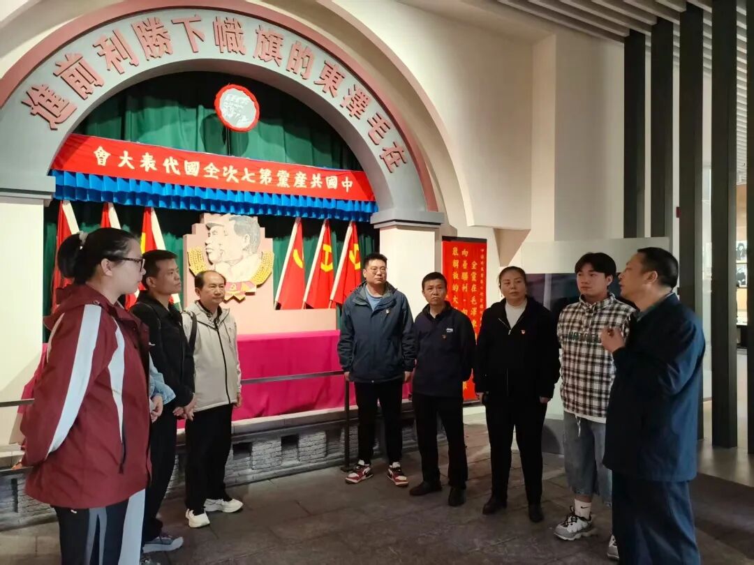 瞻仰环节结束后,党员教师们移步纪念馆室内,面向鲜红党旗整齐列队、高举右拳,在李世笑同志领誓下,庄严重温入党誓词。铿锵有力的誓言回荡展厅,字字千钧、句句赤诚,重温入党时的庄严承诺,唤醒了全体党员的初心使命,进一步强化党性修养与责任担当。
